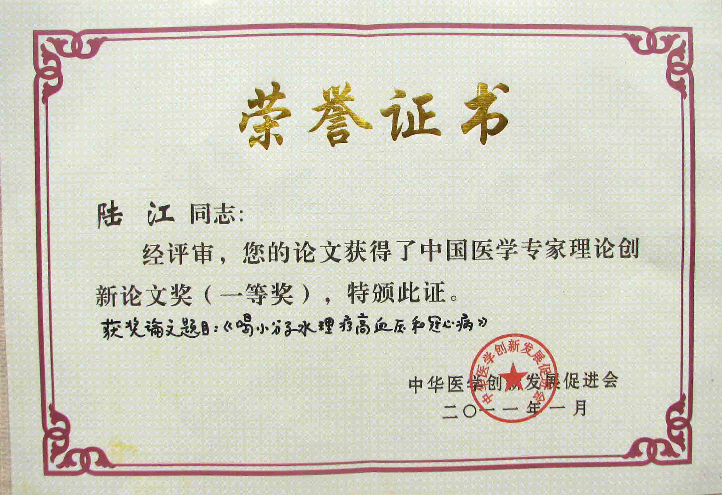 人類幾千年來患以上病癥需終生服藥,幾十年也不能治愈。可是我國南寧的高級工程師陸 江,于1990年想根治高血壓,研究發(fā)明了離子水瓶,處理出微小分子團水供飲用,經(jīng)過醫(yī)院臨床試用和專家鑒定,1999年獲中國發(fā)明專利權(quán),產(chǎn)品于2000年投放市場后一直跟蹤調(diào)查,據(jù)全國各地用戶反饋:祛除了高低血壓、糖尿病和冠心病,并使前列腺增生、咽喉炎、鼻竇炎、慢性氣管炎、支氣管炎、矽肺病、哮喘、慢性胃炎、腸炎、慢性膽囊炎、慢性腎炎、腎衰、膀胱炎、便秘、痔瘡、風濕性關(guān)節(jié)炎和濕疹皮炎及中風后遺癥等病癥不藥而愈。為什么喝微小水能治20多種病?陸 江從1991年德國科學(xué)家發(fā)現(xiàn)細胞膜水通道僅為2納米獲得啟發(fā),認為多種器官患病是因細胞脫水,不能正常代謝和分裂增殖,才使器官細胞減少致衰弱萎縮而形成細胞缺水性病癥。22年來的實踐有力地支持了“細胞脫水致病”這一重要論點,表明喝微小水可滿足細胞的生理需求,補水就能祛病,是生命科學(xué)新亮點。