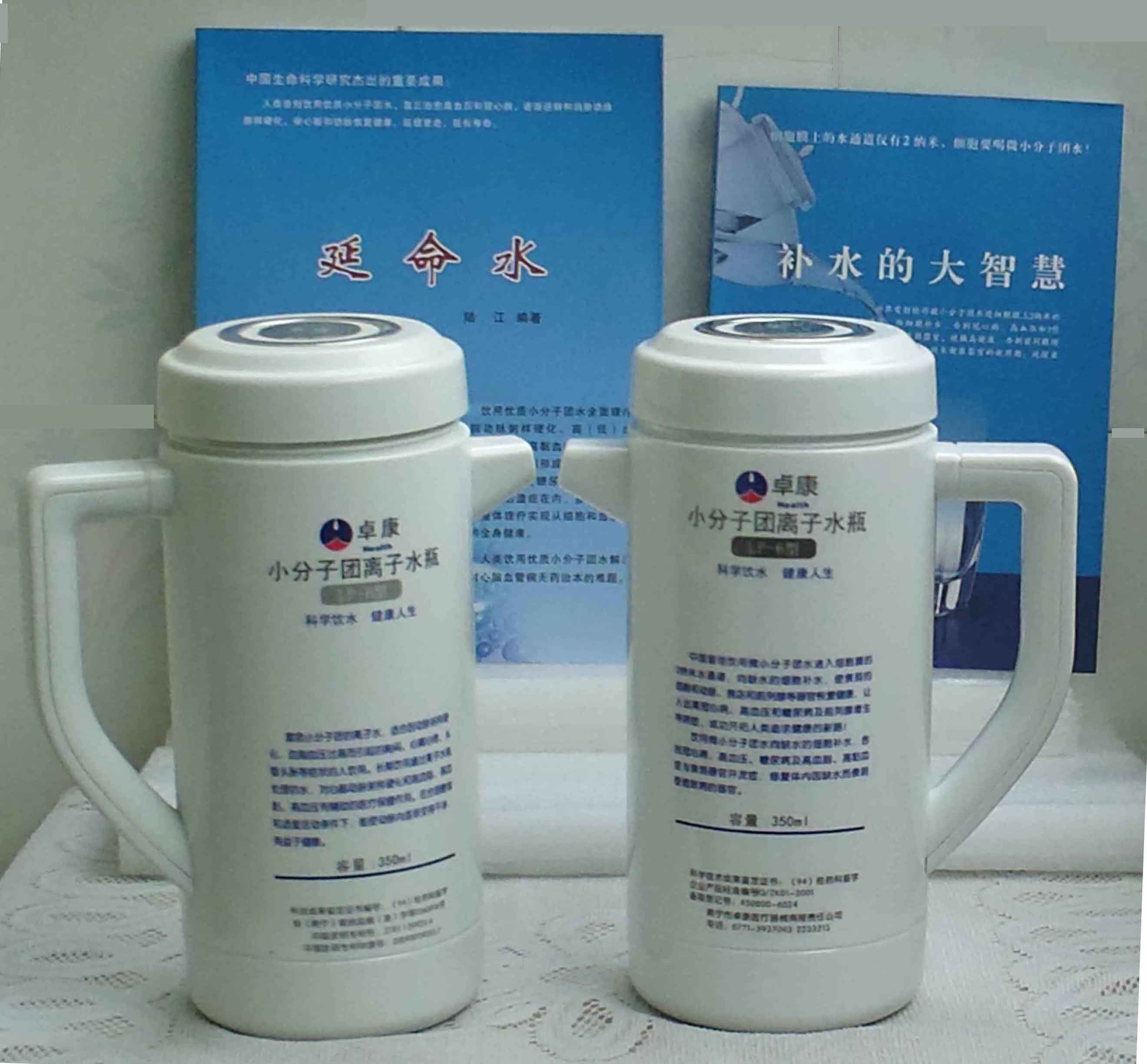 本品大量用戶的使用效果表明,能治愈冠心病、腦動脈硬化、原發(fā)性高(低)血壓、高血脂、高粘血癥、高血尿酸癥(痛風)和2型糖尿病、衰弱器官并發(fā)癥(前列腺增生、腎衰與尿毒癥)及中風后遺癥等療效好。產(chǎn)品配信譽卡。使用壽命30年,不換芯,易清洗。團購優(yōu)惠。從郵局匯款,匯費1%,地址按本頁下方地址、聯(lián)系人寫。從銀行匯款,請點擊[聯(lián)系匯款]欄,從工商銀行匯款,建設(shè)銀行、農(nóng)業(yè)銀行匯款,均免收匯費,匯款后20--30分鐘內(nèi)發(fā)短信,可用微信轉(zhuǎn)帳,均免匯費,微信號即手機號13768308380。匯款后,告知你的姓名和地址,我公司聯(lián)系人手機號是:13768308380卓康牌離子水瓶為我公司獨家生產(chǎn),郵購產(chǎn)品配《補水的大智慧》彩印書一本,另配四季出版社出版的新書《補水的大智慧》一本,并配光盤一張(含央視主持人釆訪陸江的對話視頻)。目前市場和"淘寶網(wǎng)"上有人兜售假冒的偽品,望讀者審察辯別真?zhèn)危旒僬哓飧`假冒本公司的各種證、獲獎獎項、專利號和外包裝盒上的中英文字,包括科技成果的鑒定意見等,請讀者注意防偽。如何識別假貨?已經(jīng)買了假貨怎么辦?(請點擊[打假掠影][打假掠影])。